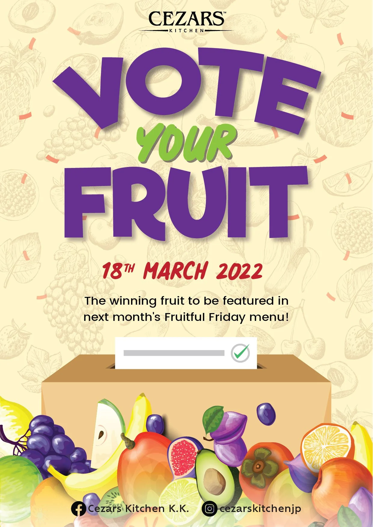 For Nutrition Month, we have organized Vote Your Fruit event for our school. Everyone is welcome to vote for your favourite fruit & we look forward for your participation!